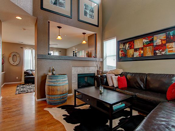 Gorgeous two-story home in Castle Rock. Located on a large corner lot in the back of a quiet cul de sac with a welcoming front porch. This home has stunning views of the Front Range. Spacious open concept layout with vaulted ceilings and brilliant natural light. Beautiful hardwood floors. Formal living room shares a double-sided gas fireplace with the cozy family room. Large open kitchen boasts new black stainless steel appliances, new over/under sink, island with breakfast bar and a pantry. The second level has three good size bedrooms and a master suite with a walk-in closet and en-suite bathroom. Additional features include: fresh interior paint, smart thermostat, marble face fireplace, updated lighting and new windows on the back side of the house. The huge backyard has a patio with a pergola, perfect for enjoying the vast mountain views. Conveniently located to shopping, restaurants and entertainment.