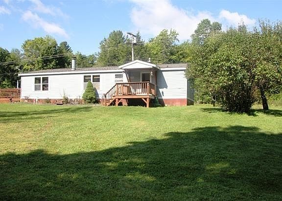 Country Escape. 3 Bedroom 2 Bath Ranch style home nestled on 5.92 mostly wooded acres bordering large tract of state land. Trails throughout property and easy access to groomed snowmobile trails. Private setting with mountain views and stocked pond. Very well maintained home offering an open floor plan, formal living room, family room with wood fireplace and spacious deck for entertaining. Large pole barn. Perfect getaway or recreation property.