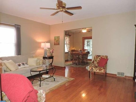 STOP STARING...and come on in! Definitely A PLACE TO HANG Y0UR HEART!This Dutch Colonial single,w/great curb appeal,has all the "I Want's".Amenities include central air,dimensional shingled roof,many newer capped windows,d/way for 2-3 cars,CF's galore,deep and wide closets,fenced yard,freshly painted rooms w/coffee colored walls,stained doors & trim and a large Trex deck.Take note of the well manicured lawn and new bull-nosed steps w/wrought iron railing going up to the entry door that leads to an enclosed porch w/8 new windows.Relax here is peace.The LR and DR boasts new shiny,cherry,wide-width floors.In the LR is a stained composite door w/oval glass insert,a small window at the turned steps to the 2nd floor,& an oak railing, as well as a double & a single window. The DR is bright and cheerful There are sliding doors here to the fabulous,4-season(heat & CA)sunroom w/6 sets of slider windows,Berber carpeting a sloped ceiling and access to the wonderfully large Trex deck w/vinyl fencing and electric.Spend lots of happy hours here!You'll have a nice view of the flat,fenced back yard complete with a patio,pavered walkway,a pond and a good-sized shed.It would be easy to do some gardening here too.The boxes are already there!Check out the 1st floor laundry, which is housed in a room combined with a large,oak pantry & S/S side-by-side fridge.In the next room is the work kitchen with LG stainless appliances...gas stove,microwave,DW w/real butcher block top,vinyl-tiled backsplash,tiled floor and soffet lights.Upstairs are 3 good-sized BR's,an updated full bath,a linen closet and Bessler stairs to great storage.Darken the sunny windows with the wood-look blinds.A couple of BR's show off newer, neutral carpeting.In the bath are Tiffany-painted walls,a medicine cabinet over the toilet,a tri-mirrored cabinet with three bulbs over the white vanity sink & Bathfitter surround at the tub.The unfinished basement comes complete with 200 amp electric service, Trane gas HVAC,a sump pump and parged walls.This place is walking distance to the train and bus stops as well.There is a free, one-yr home warranty for the buyers at closing!THROW AWAY YOUR WISHBONE... and take your place on this street for lots of happy years to come! It's a true BUDGET BALANCER!Make this one yours!.