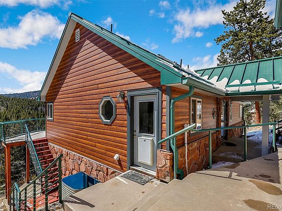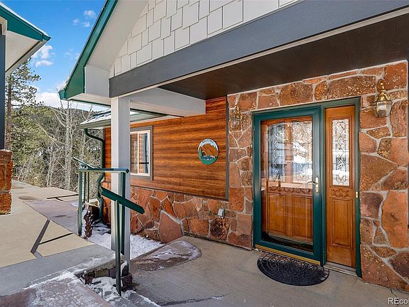 Enjoy the tranquility of mountain living in this beautiful mountain retreat with stunning views - yet only 25 minutes to Golden! Only one owner - who lovingly designed and built the home. *New wood-look concrete siding and a classic green metal roof makes this home fire-resistant ($40K renovation to make fire-resistant) Southern exposure means bright and sunny rooms! As you step inside, be wowed by the spacious open living space, ideal for entertaining, framed by spectacular mountain views. A double-sided gas-burning fireplace provides great ambiance and warmth, while the oversized windows fill the space with an abundance of natural sunlight. Great chef-worthy kitchen boasts ample warm wood, soft-close cabinetry, *new granite countertops, *new stainless steel refrigerator, pantry, and a wonderful eat-in island for more seating options. Main-level primary retreat is the perfect haven for relaxation. Enjoy vaulted ceilings for a sense of extra space, *newly remodeled spa-inspired en-suite bath, and a sliding door to the private balcony - with a soothing hot tub where you can gaze at nighttime twinkling skies! Journey downstairs to a light-filled walk-out basement with 10' tall ceilings with a newly added family room wet bar and included pool table. The corner wood-burning stove brings plenty of warmth all winter long. Open the sliding door to easily extend your indoor/outdoor living space. Two additional spacious basement bedrooms share a recently updated full bath with both a walk-in shower and separate bathtub. *Basement level has all brand new carpeting* Enjoy this home’s low property taxes, fire resistant exterior, private community hiking trail connected to Golden Gate State Park, and conveniently close to Golden, Black Hawk, the local Community Center and Golden Gate State Park! ** All roads maintained by the county, even Golden Gate Drive's dirt road*