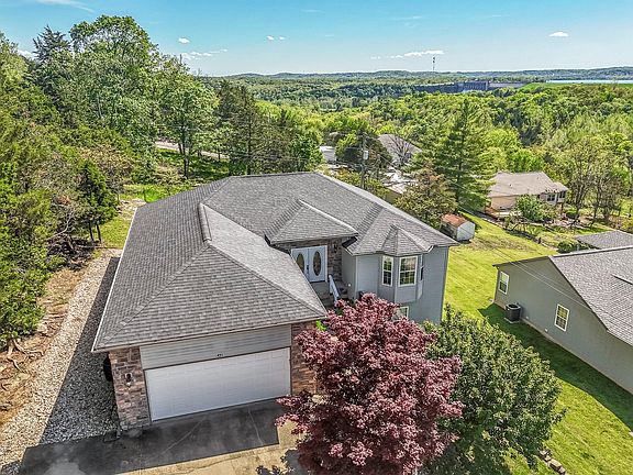 Enjoy breathtaking views of the Ozark Mountains, Table Rock Dam, and Chateau on the Lake--all visible right from your home. This well-maintained, move-in ready property features 5 bedrooms and 3 bathrooms, offering an open floor plan with vaulted ceilings, a cozy fireplace, and a split-bedroom layout. The kitchen boasts ample cabinetry and a walk-in pantry. The lower level includes a spacious family room, a walk-out basement, two guest rooms and a full bath. Off the dining area you have both a screened-in covered deck and an open deck--perfect for entertaining or relaxing. Bonus: there's extra driveway parking and an additional undeveloped lot included. Nestled in a peaceful neighborhood surrounded by beautiful homes, you're just minutes from all the Branson attractions, Lake Taneycomo and Table Rock Lake! And yes--you can watch fireworks from your deck! Located in the Branson School District.