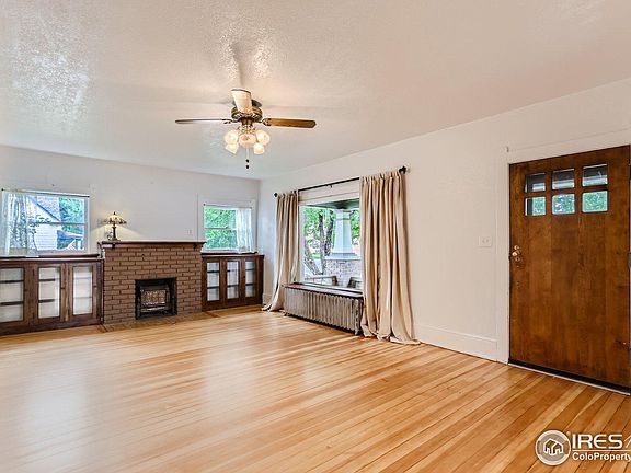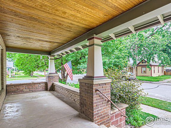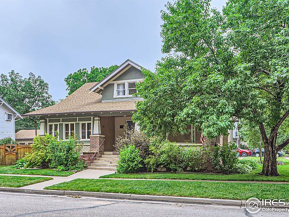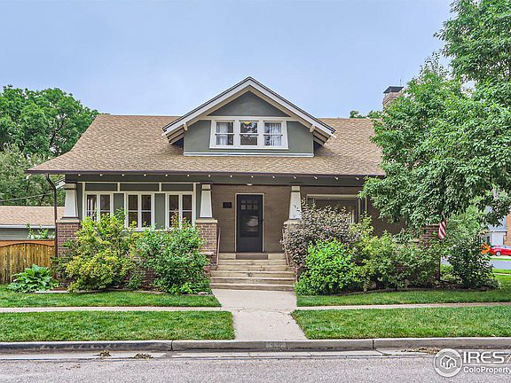 1920 CRAFTSMAN HOME in downtown Loveland. This beautiful brick home has so much character! Totally updated kitchen with custom cabinets from Artisan, stainless steel appliances, leathered granite countertops, stand mixer lift. Open living room flows into large dining room, with built-in cabinetry and original wood floors. Unique antique gas fireplace insert. Main floor primary bedroom and full bath. Two bedrooms upstairs with half bath and small sewing/office room. One large non-conforming bedroom and laundry room in basement. Cozy, enclosed sunroom full of windows, just off dining room, makes a great office or breakfast room. Fully fenced and irrigated yard with perennials and raised vegetable garden, large corner property. 1 car detached garage. Old-fashioned, covered front porch where you can relax and enjoy the beauty and friendliness of the neighborhood. Boiler with radiant heat keeps this home comfy. New Daikin mini-split units add air conditioning to keep you cool in the summer. New exterior paint. This wonderful, historic Loveland home is just around the corner from downtown restaurants, breweries, shops, art galleries, parks.