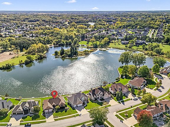 This beautifully maintained ranch-style home features 3 spacious bedrooms, 3.5 bathrooms, a dedicated home office that can second as a 4th bedroom, and a finished walkout basement--offering the perfect blend of comfort and functionality. The open-concept main floor boasts stunning lake views, a modern kitchen, and a seamless flow to the large deck--ideal for entertaining or relaxing outdoors. Each bedroom includes generous closet space, with walk-in closets in the primary suite and guest rooms. Downstairs, the fully finished walkout basement provides expansive additional living space, complete with a large rec room, full bath, and private entry--ideal for a guest suite, in-law quarters, or multi-generational living. Enjoy peaceful mornings by the lake, work-from-home flexibility, and a home that adapts to your lifestyle. Located in the sought after Lake of the Meadows - a prime location just minutes from Route 30 and US-41, featuring reliable Chicago water service. Don't miss this exceptional opportunity to own waterfront property with room for everyone! Whether you're working from home, hosting guests, or enjoying peaceful lakefront mornings, this home has it all!