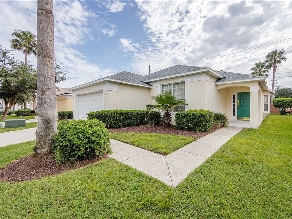 Come view this affordable 4 bedrooms 3 bathroom pool home. Private backyard, no rear neighbors! Brand new roof! Newer paint and carpet on inside of home. Kitchen fully equipped with refrigerator, microwave, range and dishwasher. Lawn care included in the HOA dues. Gated community. Nice neutral colors throughout. Linoleum that looks like wood in the wet areas. Carpet in bedrooms and living room. 2 car garage. Screened in lanai with private pool. 2 master suites. Centrally located to Disney, attractions, restaurants and shopping!