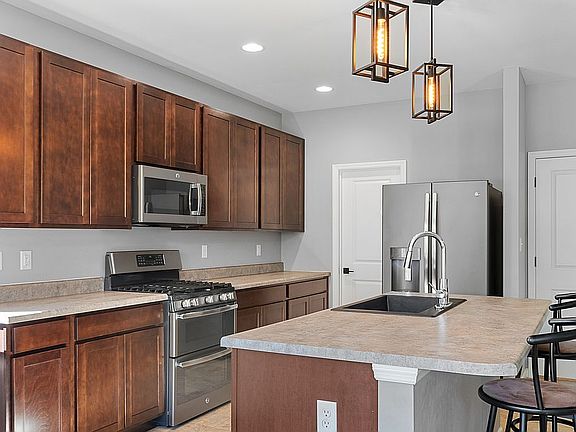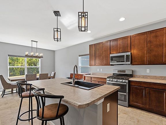 Why build when you can buy! This 3 years young full brick front exterior home backs to trees & 2 ponds! 9 ft ceilings, open floor plan & tons of natural light with views of the picturesque yard! The kitchen boasts 42" soft close cabinets, large 1 level island, slate stainless steel appliances, double convection oven, gas range & oversized pantry! Owner's suite with coffered ceilings, 2 closets including a walk-in with built-in shelving, & dual vanity! Walkout basement with rough-in bath, rough-in wet bar & egress windows for 2 future bedrooms! All appliances stay! Additional features: oversized fully drywalled and insulated garage, oversized driveway, upgraded lighting, 2 panel doors with rubbed oil bronze knobs, surround sound, custom TV hookups in every bedroom, no nails in the drywall to prevent nail pops, custom blinds, main floor laundry with additional hookups in basement, upgraded R-15 high density insulation & R42 in attic, spray foam insulation at all exterior exit points & so much more! This one has it all!