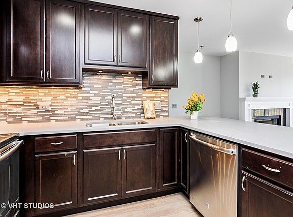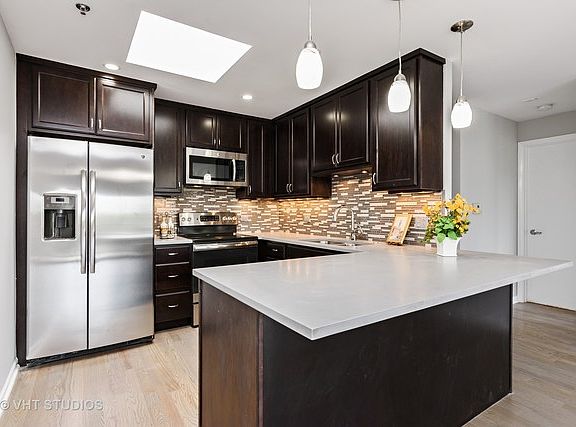 Are you the lucky one hunting in the fall for a good deal? This impressive penthouse unit was worth the wait! Stunning renovation from top to bottom boasts stylish kitchen in dark cabinets, cement quartz counter tops, glass tile backsplash, skylight, stainless appliances, built in microwave, awesome pendant lighting. Hardwood floors in great room & kitchen. Brand new carpet in bedrooms. Check out the walk-in closet with custom closet organizers superior to some single family homes. Upgraded bathrooms in this split bedroom floor plan. Custom gas fireplace surround greets you. Enjoy the views from the balcony. in-unit washer dryer. Association offers both indoor/outdoor pools, exercise, tennis, basketball, clubhouse. Unit has one heated parking space with ample guest parking outside building. Mint condition-brand new in today's color palette. Ready for you! 10+