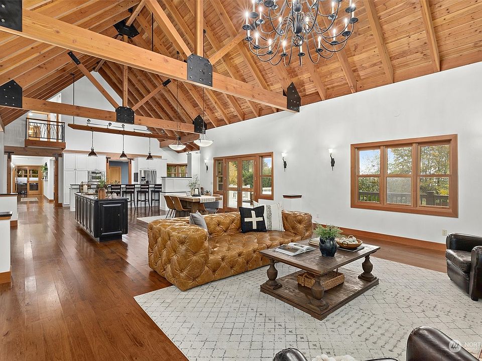 Extraordinary attention to detail in this meticulous 5,600 sq ft. custom designed home with mountain and territorial views! Located in the desirable Seven Lakes Community, this private, gated and fully fenced 2.6-acre estate is an entertainer's oasis! Luxurious touches and thoughtful design concepts throughout, including hickory hardwood floors, soaring cedar ceilings with exposed wood beams, expansive gourmet kitchen with SS appliances and honed granite, custom wrought iron railings, main floor mudroom/butler's pantry, wireless AV system and 3rd floor media room! Freshly painted ext. & int. and brand-new carpet throughout! Covered RV parking with power, 2 heat pumps, basketball court and wired for a generator! Don't miss the Virtual Tour!