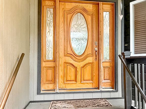 Enjoy the country setting of this single-level home where a beautiful oak entry door with leaded glass welcomes you. Featuring 3 bedrooms, 2 baths, cathedral ceilings and a cozy living room with a fireplace. The eat-in kitchen includes solid wood cabinets , all appliances, and a double oven. French doors lead to a relaxing den, perfect for entertaining. The primary suite offers his-and-her closets, sliding doors to the back deck and an en suite with a soaking tub. Skylights bring in natural light. Newer roof with leaf guard gutters, 1 yr old Heat pump, RV parking, and an attached 2-car garage. Mature plantings, beautiful trees, and a circular driveway complete this peaceful property.