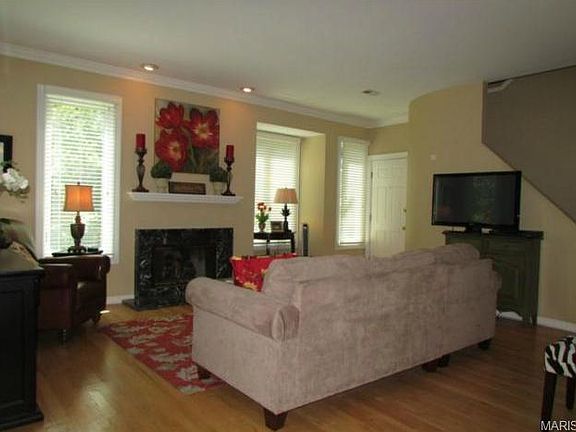 Welcome to this unique 3-story townhouse located in a quiet upscale neighborhood! Enjoy the open floor plan with plenty of natural sunlight and all new Anderson Windows installed in 2012! Enter into the cozy living room boasting a newer gas fireplace with marble surround, 10 ft ceilings and crown molding. The kitchen features stainless appliances and a breakfast bar that opens into the dining room with it's large picture window. Hardwood flooring throughout the first floor. Enjoy relaxing or entertaining on the deck off the main level! On the second level, you'll find the master bedroom suite with vaulted ceilings and a large walk-in closet, 2nd bedroom, full bath and convenient laundry room. The third floor is a suite of it's own with another bedroom, full bath and storage closet. New hot water heater in 2013 and new roof in 2010! To complete this unit, there's a 2-car attached garage! Conveniently located to downtown Clayton, shopping, restaurants and easy highway access!