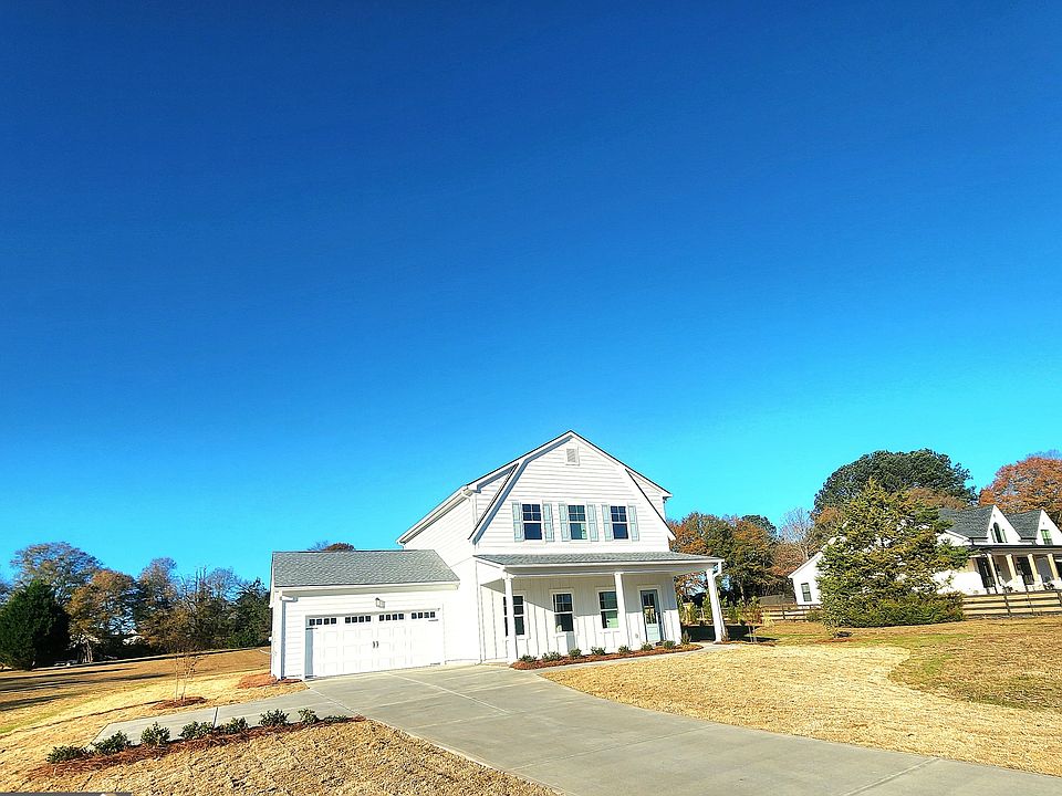 Welcome home to this beautifully designed 4-bedrooom, 3 full bath craftsman style residence with classic Cape Cod nods, including a distinctive gambrel roof and inviting front porch. Situated on a serene 1.92 acre lot, this home offers space, privacy, and timeless character. An oversized front porch with columns sets the tone, while the large screened rear porch with grilling pad provides a private place to relax and enjoy your expansive backyard. Inside, the open layout is enhanced by 9-foot ceilings on both levels and durable LVP flooring throughout. Natural light fills the entirety of the home through the abundance of windows throughout. The heart of the home features a generously sized kitchen with quartz countertops and a tile backsplash, flowing into an oversized dining room- Ideal for gatherings and family meals. A main-level 4th bedroom with a full bath offers flexibility guest suite, in-law suite or private home office. Upstairs, bedrooms 2 and 3 share a Jack-and-Jill bath. The spacious primary suite is a true retreat, showcasing a nice view of the backyard, an oversized walk-in closet, a tile shower, backlit LED mirrors and a large double vanity. Peaceful setting with modern comforts.
