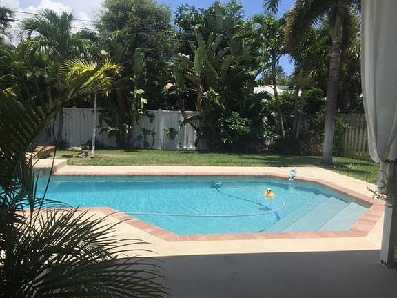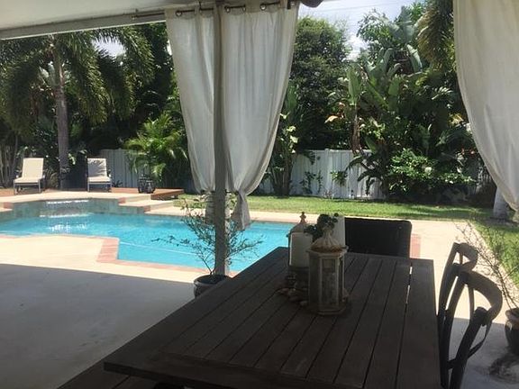 Welcome to this East Boca beauty! As soon as you walk through the door you'll feel at home & once you see the pool & back yard, you'll never want to leave! A rare opportunity to lease a home in this area w/private pool & gated, lushly landscaped backyard.Home has upgraded kitchen w/stainless appliances, upgraded bathrooms, beautiful travertine marble flooring in the main living areas, wood floors in both bedrooms & two sets of French doors overlooking the pool, patio & back yard. The large backyard is very private & has a nice covered patio - a great way to unwind after a busy day. This home also has a one car garage w/circular driveway & impact windows/Accordian shutters for all windows/doors, security system w/camera. Water, lawn and pool service included in rent.