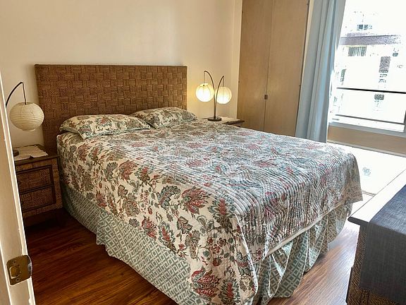 Fully Furnished All Utilities included 2 Bed 2 Bath 1 covered Parking stall. Spacious corner unit with 824 sq feet, plus enclosed lanai another 82 square feet. Two window AC's in both bedrooms. King bed in primary with walk in closet. All utilities included, wifi, cable, electricity and just a couple of blocks to the beach, 1 block to International Marketplace or the New Waikiki Market on the corner. Secure building, 1 assigned garage parking stall & surfboard storage. Great location in the heart of Waikiki walking distance to beach, shopping, eating, golf and zoo. No Pets, and No Smoking in building.