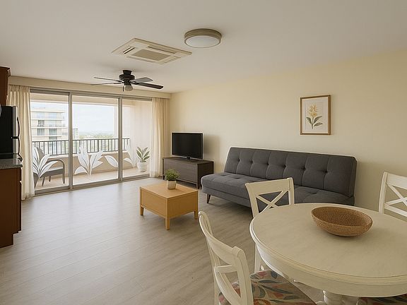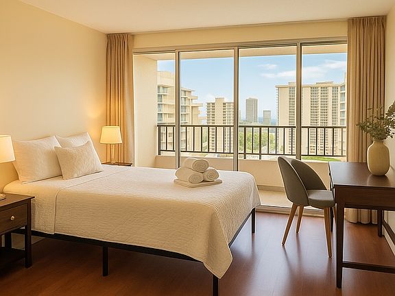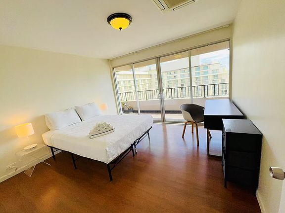 Welcome to your perfect getaway in the very center of Waikiki right next to the International Market Place! This bright and breezy penthouse offers everything you need for a relaxing stay, whether you're here for a short trip or an extended vacation. The Space: 3 comfortable bedrooms, each with a queen bed and full bed (sleeps 6 total) Cozy sofa bed in the living room for 2 additional guests 1 clean bathroom with shower Fully equipped kitchen with full-size appliances Large open-concept living and dining area Work desks in each room, perfect for remote work or study Highlights: Huge private lanai (balcony) with stunning ocean and city views Central A/C + ceiling fans for extra comfort Washer & dryer in unit for your convenience 1 reserved parking spot included Fast Wi-Fi and smart TV Quiet, family-friendly building with elevator access Location: You can't get more central than this! Steps away from: Waikiki Beach Restaurants, shops, and nightlife International Market Place and Royal Hawaiian Center Bus lines and public transportation Elec. water, internet all included