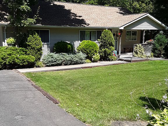 In Kingston there is a charming 3 bd,1 bath,ranch that sits on 4.52 acres.Enter the home and be welcomed by the updated kitchen w stainless steel appliances and EIK.To the left is the formal living room.There is a large office/den on the main floor that can also be used as a play room w skylights.There are two bedrooms on the main level and one full bath.At the end of the main hallway there is a massive walk in closet.Down stairs there is another bedroom/living area. There is a utility room w washer/dryer, wood burning stove, and half bath.The basement has a walk out to back yard. There is a wrap around porch. Above ground pool. The detached garage is 2 levels and can fit 2 cars. The bottom level is insulated and the top level is great for storage.It was built in 2010.The roof was replaced in 2020 and has a 50 year warranty that is transferable.The well was replaced in 2020.The furnace was replaced in 2005 Paved driveway w plenty of parking.There its a pond in the back yard.