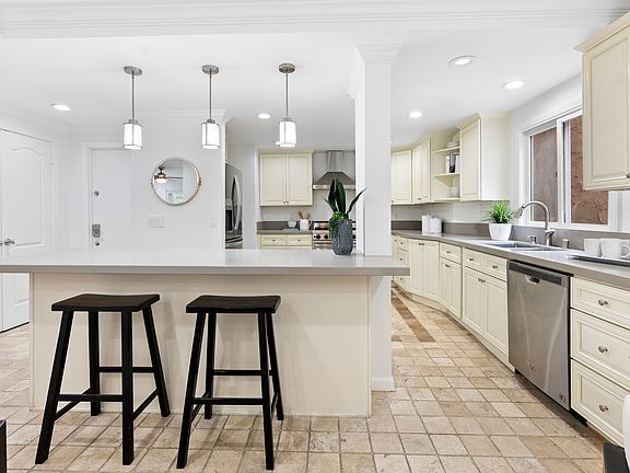 Step into your dream home with this stunning 4-bed, 3.5-bath gem. From the moment you arrive, you'll be captivated by the exquisite details and stylish features that enhance every inch of this home. Boasting 3 levels, a balcony, beamed ceilings, and crown moldings, this residence exudes elegance and sophistication. Prepare to be amazed as you step onto the living room balcony and breathe in the fresh ocean air. With recessed lighting illuminating your every move, you'll appreciate the attention to detail that has been carefully curated throughout this home. Central heating and gas cooling guarantee year-round comfort, ensuring you'll always have a cozy retreat to come back to after a long day. Discover the true meaning of luxury with not one, but two primary suites. Unwind in your own private oasis and pamper yourself in your primary bath, complete with double sinks for added convenience. The separate family room with a fireplace provides the perfect setting for cozy nights in or entertaining guests. The kitchen is a chef's dream, featuring Corian counters, a butler's pantry, and self-closing cabinet doors and drawers. Whether you're hosting a dinner party or preparing a family feast, this kitchen is sure to impress. With its remodeled design and tile and wood flooring, it seamlessly combines style and functionality. No detail has been overlooked in this home, including the breathtaking ocean view that awaits you. Imagine waking up each morning to the sight of the glimmering blue waters and feeling an instant sense of tranquility. Each day is a reminder that you've found your piece of paradise. With 2 garage spaces and a fountain in the front courtyard, this home truly has it all. Don't miss your chance to make this dream home a reality. Embrace the luxurious lifestyle you deserve and start living your best life in this magnificent residence.