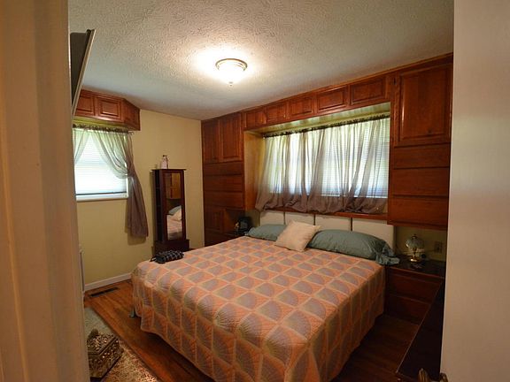 Very well cared for 3 bedroom, 1.5 bath brick home with large metal storage/workshop in back yard. Custom cabinets throughout complete house including bedrooms, built-in entertainment center and hutch in living room. Buyer to verify measurements