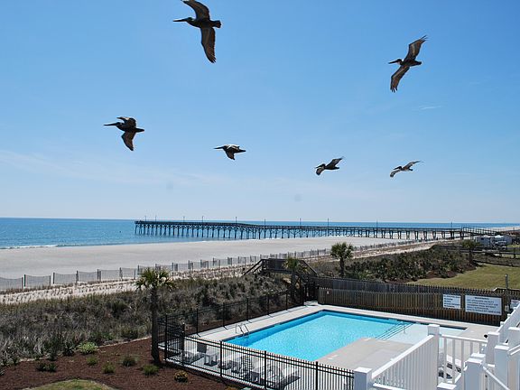 Enjoy the ocean breezes and beautiful ocean views from this ocean front condo. Beautifully furnished with top of the line furnishings, granite counter tops, tile back splash, beautiful tile floors throughout, beautifully updated bathrooms with subway wall tiles, bead board trim throughout and stunning ship lap accent walls in both bedrooms a MUST see. Relax on your private deck as you watch the dolphins go by over looking the beautiful inground pool. This unit has all you need for a great beach getaway. Holden Beach is situated between Wilmington and Myrtle Beach for easy day trips, shopping and restaurants. Relax, you're at the beach.