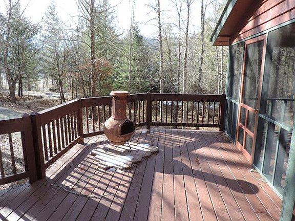 Charming 3BR/2BA overflowing w/character on 3.38 acres in the heart of Valle Crucis. Inviting covered entry leads to Foyer w/tile flooring. Great Room features wood stove w/two-story stone surround, vaulted wood ceilings w/hefty exposed beams, large windows, & French doors that open to an expansive screened porch w/tile floors & large open deck. Kitchen boasts hand-made cabinets w/stain glass upper doors, black wrought iron hardware, & tile counter tops. Spacious Master Bedroom suite, large Loft/Office w/built-in bookshelves, & laundry closet located on the upper level. Main floor Guest BR. Walk-out lower level offers a Bedroom/Family Room w/wainscoting, Utility Room, & Work Shop area. Heat sources include wood stove, electric heat, thermal unit, & electric thermal storage unit. Large open decks. Two-car garage w/Storage Room. Tile flooring in Foyer, Great Room, Kitchen, Baths, & screened porch. The home is in Hickory Ridge subdivision - an ideal location close to the Watauga River & all Valle Crucis amenities including the Community Park, Mast General Store, & Elementary School.