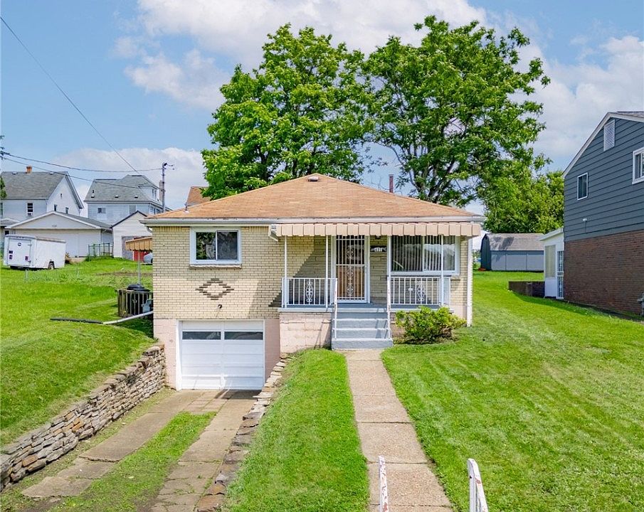 Well-maintained ranch home - bigger than it looks with closets everywhere! Head up the front sidewalk to the covered front porch. The large living room has multiple windows for natural light. Tons of cabinet and counter space in the kitchen. Open view into the formal dining room. Off the kitchen is another door for access to the side porch. Down the hall are two spacious bedrooms and the full bathroom with tub/shower. New carpet has just been installed throughout the living and dining rooms, hallway, and bedrooms. The lower level offers a finished gameroom and closet under the steps. The huge utility room has a "half bath", laundry hookups, and tons of room for storage. Deep 1-car garage. Outside, enjoy a beautiful yardspace with room for a garden or play area.