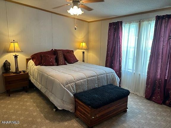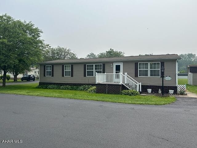 Nice Ranch home on corner lot with 3 Bedrooms and 2 Full Baths ,Rear Deck with Awning ,Large Storage Shed,New Hot Water Tank,Newer Roof in 2022,Most rooms have been Dry walled,Nice Front Porch with Vinyl Railing,Corner Lot ,Move In Ready ! 55+ Community Lot#74.