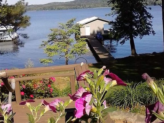 NEW PRICE! This Lakefront home with captivating views has been updated and is move in ready. The desirable open floor plan includes kitchen, dining and living room overlooking the water and rolling hills. This home features stainless steel appliances, hand scraped wood floors, master suite with sitting room, screened in porch, boathouse and 2 car garage. Enjoy relaxing or entertaining from the large deck and flagstone patio. This home is a must see for your waterfront home search!