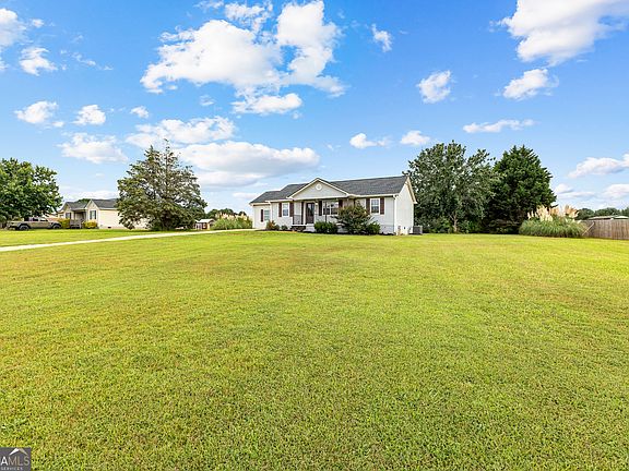 Beautiful 3 BEDROOM/2 BATH HOME IN WILLIAMSON about 10 minutes from Senoia. Open floor plan has vaulted ceiling and ceiling fan in the living room. The dining area looks out over the huge covered back patio. Kitchen has a breakfast bar and a window over the sink that also looks out to the back patio. Off of the kitchen, you'll find the laundry room with a pantry area. The large master bedroom with full bath has a lighted walk-in closet. The home also features two nice-sized bedrooms and a full bath with an extra-wide door. The covered back patio makes a perfect spot for entertaining or just relaxing in the evenings! The 28x28 metal outbuilding/workshop with concrete floor and separate electrical panel could be used as a workshop, man-cave, garage, and so much more! Watch beautiful sunsets from the covered rocking chair front porch. Live the quiet country life in this well maintained home.