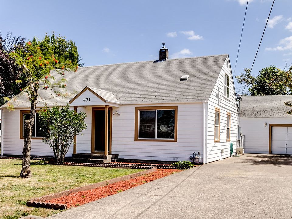 New price reduction! This house has been nicely updated: new exterior paint, new trim, new carpet, new inside paint including family room, downstairs bathroom, and bedrooms upstairs. Newer wall heating. Gas range, new paint on garage. Detached oversized garage and long concrete driveway for extra parking. Big fenced back yard.The house was rented for $1,100/month.