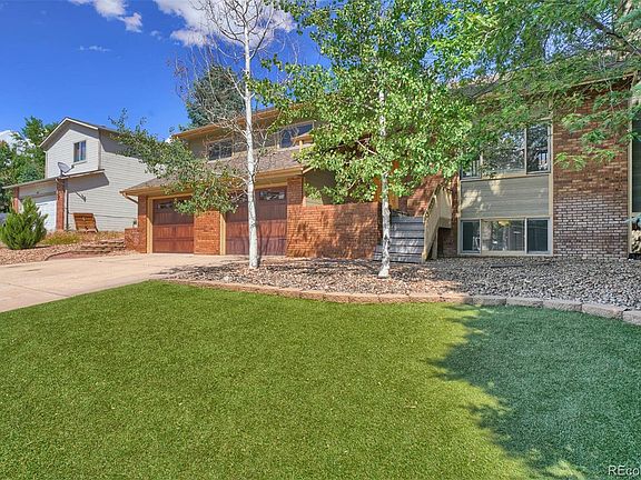 In the heart of Castle Rock is this private oasis! With large trees and the perfect back yard to relax in or entertain in. Turf in the front and back yards including a putting green and fire pit area! Massive trex deck with your own pool! 4 bedrooms and 3 bathrooms open floor plan with Custom showers, and fireplace. Lower level has an office area, rec room and wet bar. Open kitchen and dining area overlook the living/family room. This home won't last!