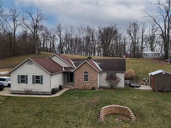 Nestled in a serene country setting on a dead end street, this beautifully maintained ranch home offers a tranquil atmosphere - perfect for those seeking comfort and relaxation. Situated on a generous 3/4 acre lot, the property boasts 3-4 bedrooms and features 10-foot vaulted ceilings in the living room and kitchen, creating an airy and spacious feel. The home features a new roof installed in 2013, new AC in 2022, ceramic tile bathrooms, and hardwood floors in the kitchen. First floor laundry. The finished basement provides additional living space with a family room, full bath, and a 4th bedroom with a walk-in closet. A huge storage room in the basement has the potential to be converted into an additional bedroom if needed. Enjoy low electric bills and a budget-friendly gas budget. This home is located in a quiet neighborhood with stunning sunsets and frequent deer sightings. Other features include a Culligan soft water system for added convenience and ample storage throughout the home. The property also features a beautifully landscaped yard with an abundance of outdoor entertaining space with a multi-tier deck, added storage shed, and extra parking. All appliances will convey. This is a rare opportunity to own a charming home in a peaceful setting. Don't miss out!