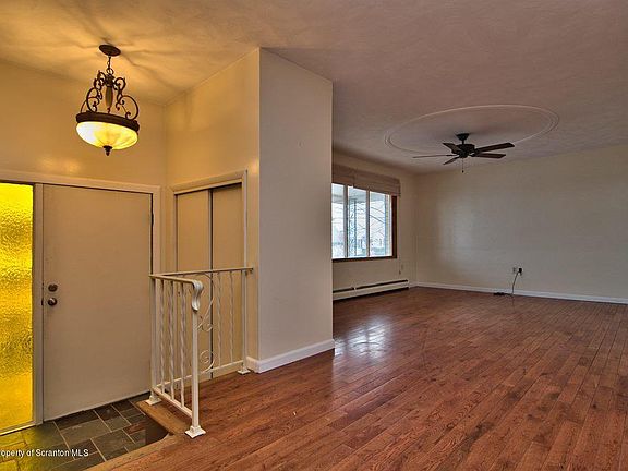 Awesome updated Ranch in Dunmore w/ finished Lower Level! Newer Hardwood floors throughout Main Level with this 4 Bedroom, 2 Full Bath Beauty! This place has it all! Beautiful Modern Bathroom, Newer Kitchen w/ appliances, New 220 Amp electric, drainage system installed, New front door, &Andersen Bay window look out onto the 15x30 covered back Patio and above ground heated Pool --Whatttta Place! Check out the finished downstairs with tiled floors, full Bath, Laundry and plenty of storage coming in from the 2+ Car Garage. Separate driveway around back alley for even more off street parking and a nice backyard. Whole house fan cools the home in the summer and, almost all, Newer windows make for efficient heating and cooling. Come check out this spacious Ranch Home in Dunmore Today!