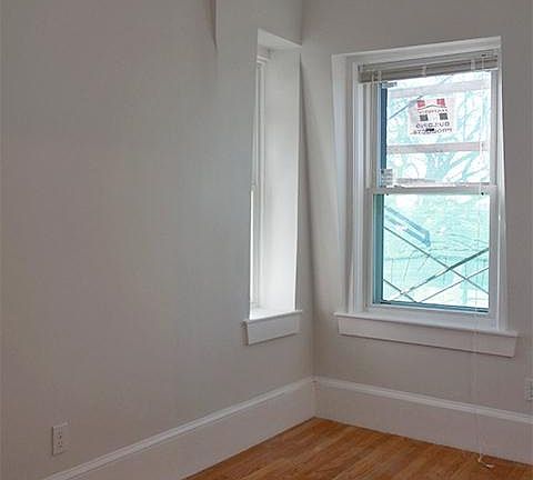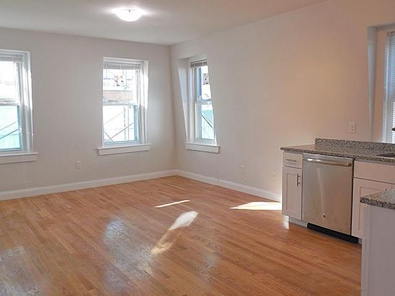 3 bedrooms with modern kitchen and bathroom. Kitchen features new cabinets, granite countertops, and stainless steel appliances including a dishwasher. There are new hardwood floors throughout, central air conditioning, and laundry in the building.