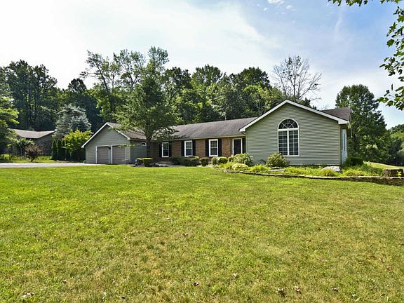 BEAUTIFUL 3 Bedroom 2.5 Bath Ranch Home sitting on OVER 1.6 acres w/ IN-GROUND POOL. Hardwood floors from entry into Dining Room w/ NICE molding & trim work open to UPGRADED Kitchen w/ GRANITE counters, NICE amount of cabinetry, & STAINLESS STEEL APPLIANCES. Cozy Sunken Living Room & Family Room. Master Bedroom has vaulted ceilings, double closet, built in dresser, & has a jack&jill tiled bath. 2 additional bedrooms w/ laminate flooring including the 2nd Master Bedroom w/ PRIVATE tiled bath. This property is a park like setting with a PRIVATE fenced in area w/ LARGE decking covered by a pergola that overlooks the pool. This home also has a 2 Car Garage, partial basement, & NEW heating system! CALL TODAY to come see this AMAZING Home!