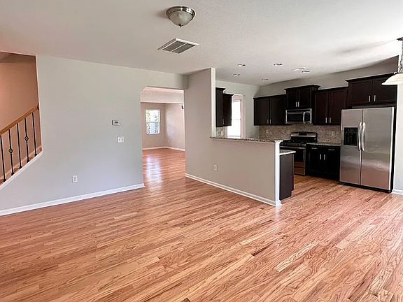 Lovely home located in the Summerdale Community in Fuquay-Varina. Hardwood floor throughout entire first floor, open living and dining area with bright and spacious family room. Spacious kitchen with lots of cabinets, a pantry, stainless steel appliances (gas range!) Easy backyard access. Guest room downstairs with bathroom and 2-car garage. Hardwood stairs with carpeted hallway upstairs and bedrooms. House has great natural light. Double vanity bathroom in hallway, with big primary bedroom, walk-in closet, and master bathroom with separate shower and bath. Conveniently located less than a minute drive from downtown Fuquay-Varina and Fuquay Dog Park! Close to shopping, dining, grocery stores, and nearby parks and trails. Homeowner pays HOA fee. Landscaping/lawn care is tenant's responsibility. All utilities not included, 12-month lease, any pets will require a one-time nonrefundable fee. $50 company application fee, but you do not need to pay it unless you're approved to rent the house! No upfront fees except the fee you pay to Zillow to apply. No smoking allowed inside the home or in the garage.