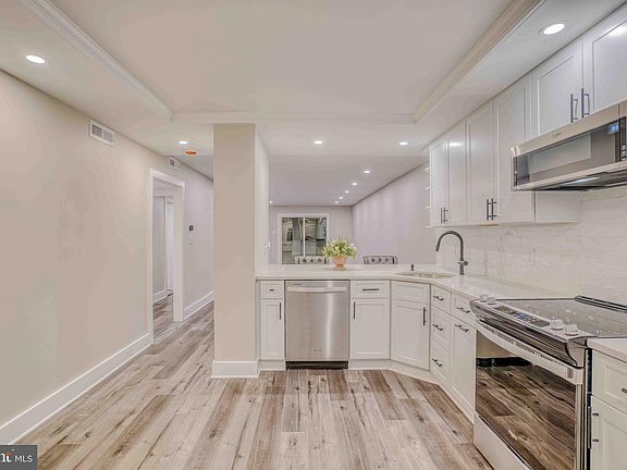 Welcome to 431 Summit House, a stunningly renovated 2-bedroom, 2-bathroom home offering modern upgrades, stylish finishes, and ample living space. Nestled in the highly desirable Summit House community in West Chester, PA, this home has been completely transformed to meet the needs of today’s homeowner, combining elegance, functionality, and comfort. Upon entering, you’ll immediately notice the open and airy floor plan, featuring brand-new flooring, fresh neutral paint, and recessed lighting throughout. The gourmet kitchen is a showstopper, complete with white shaker cabinets, quartz countertops, a stylish subway tile backsplash, and stainless steel appliances. Under-cabinet lighting highlights the clean, modern design, while the open-concept layout makes cooking and entertaining effortless. The living and dining areas flow seamlessly together, offering plenty of space for relaxation and hosting guests. Large windows allow natural light to flood the space, enhancing the home’s warm and inviting atmosphere. The spacious primary bedroom offers a tranquil retreat, featuring ample closet space and large windows. The second bedroom is equally generous in size and can easily serve as a guest room, home office, or nursery. Both bathrooms have been completely updated with modern vanities, sleek fixtures, and beautifully tiled showers. The attention to detail in these spa-like spaces provides a luxurious feel, making everyday routines a pleasure. One of the standout features of this home is the fully finished basement, offering endless possibilities. Whether you need a home gym, entertainment area, playroom, or additional workspace, this versatile space is ready to accommodate your needs.Living in Summit House means enjoying access to top-tier amenities, including a community pool, fitness center, clubhouse, and tennis courts. The location is unbeatable, with easy access to West Chester Borough’s vibrant downtown, major highways, shopping centers, and top-rated schools. This turnkey home is truly a rare find, combining modern luxury with a prime location.