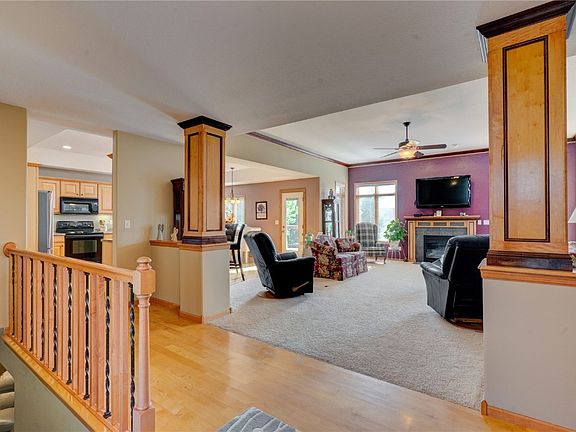 This impressive 3,400+ SF custom built ranch exudes exceptional quality and beauty and is situated in one of Fairfax most sought-after neighborhoods. The main level is dramatic in design and craftsmanship, boasting a living room with a soaring 10 foot ceiling, captivating wood pillars, crown molding, a central fireplace, and floor to ceiling windows to flood the home with natural light. The kitchen features maple hardwood floors and cabinetry, a 9-ft hip tray ceiling, a breakfast bar, adjacent dining space, & walkout that leads to your wood deck w/ rod-iron detail and generously sized fully fenced yard. Upstairs features 3 considerably sized bedrooms, including your primary retreat with jacuzzi tub + walk in shower + large walk-in closet + dual vanity. The walk-out lower level offers an additional 1,500 sq ft of immaculate living space – a 2nd living room equipped with gas fireplace, recreational space, 2 additional bedrooms, a full bath, and spacious storage room. Other notable features: 1st floor laundry, central vac + irrigation+ security system are installed, new roof, newer paint upstairs, beautiful landscaping. With easy access to major roadways Hwy 30/Hwy 100/I-380, value of being in College Community School District, and appealing neighborhood, this home is the perfect blend of convenience and luxury.