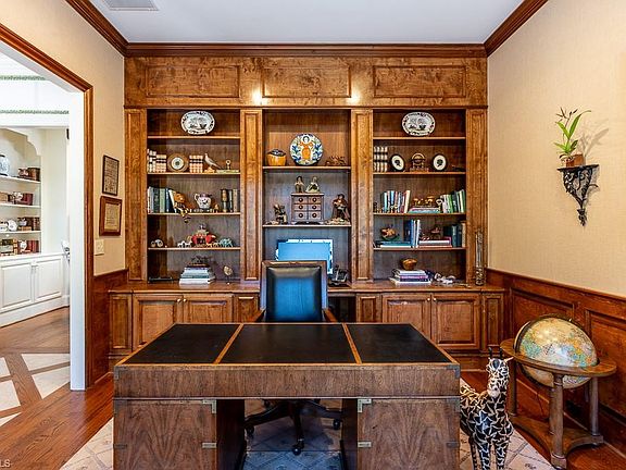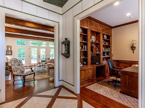 Exceptional home in Shelburne Village at Camelot is a beautiful blend of style and comfort. Step into the great room from a spacious and welcoming entry, and you will appreciate the stunning great room. Fireplace is flanked by beautiful cabinetry and ceiling is accented with gorgeous beams. A wall of windows and French doors overlooks the private backyard, complete with terrace and pool. Cozy study with built-in cabinetry can be office, library or sitting room. Kitchen is well equipped for function and ease of entertaining with adjacent spacious casual dining area. Delightful sunroom is ceiling-to-floor glass and sure to be a favorite spot. Primary suite is a perfect quiet retreat with fireplace and sitting area. Two additional bedrooms and full bathroom on the main level. Den, bonus room, and full bathroom on the second floor offer lots of options for additional living space. 2-car garage. Sold as is.