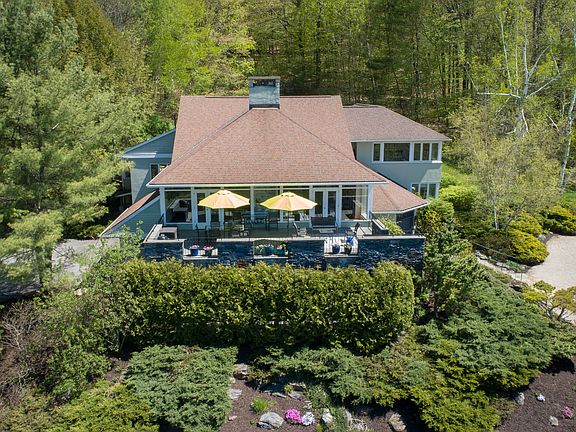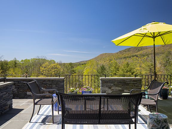 Exquisite Design Captures Berkshire Beauty and View! Architect Arthur Schwartz's exceptional design with distinctive Frank Lloyd Wright's influence captures natures outdoor beauty within the indoor living spaces. Panoramic sweeping views of the Berkshire mountains framed with walls of windows and grand open living spaces set the stage for a unique Berkshire living experience. Grand open spaces defined by pillars and mouldings create a stately atmosphere with an open floorplan yet offer intimate seating for relaxation and refuge. Walls of windows thoughtfully placed in each room fill the indoors with natural light encompassing breathtaking vistas and woodlands. Elegant glass doors lead to stone terrace mindful of natures' elements enveloping the Berskhire Lifestyle!