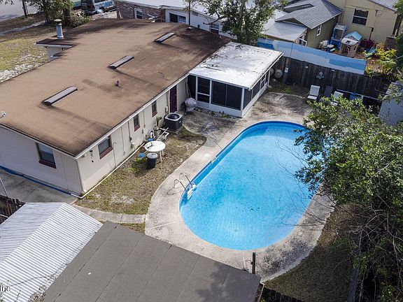 **FHA Assumable at 5.5% rate™* (Roof 7 years & AC * years) This affordable concrete block, salt water pool home offers a spacious 3- bedroom, 2-bath floor plan. The large living area features a freestanding wood-burning fireplace, while the tiled dining room and eat-in kitchen with new appliances provide ample space for entertaining. This property includes a washer and dryer. Enjoy outdoor living in the fenced backyard with a large inground pool with a new pool pump, ideal for summer fun. Let's not forget the screened patio! Located near Blanding Bivd's restaurants, shops, and the OP Mall, and just a few minutes from NAS Jax, this home offers great value with no HOA fees!