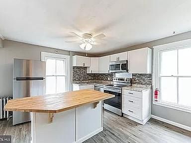 A 2-bedroom unit recently renovated in the heart of Wayne, Radnor school district. Enter the unit from the front of the house on W Beechtree Lane. Walk into a large foyer/ entryway with storage as well as the washer and dryer. The interior door leads you upstairs to the 2nd-floor unit. A brand new kitchen with new appliances- refrigerator, dishwasher, and oven, backsplash, and a large island with a butcher block top, opens up to the living room. There is a front porch off the living room. Bedroom #1 and the full bath are located on this floor. The second floor includes a #2 large bedroom and 3rd room, and a large hall closet. The 3rd room could be used for a playroom or a home office. The backyard is flat and great space. The backyard is shared by the tenants. Bilico doors lead down to the basement. Recently installed two new heaters. The basement is large and shared by tenants for storage. The owner pays for water. Tenant is responsible for gas and electricity, and snow removal. First, last month, and a security deposit are required
