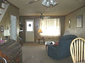 A Rare Find for this Price! Two Story SINGLE w/private off street parking. Fenced-in L-shaped yard area. Bright, spacious Living room w/attached bookshelves. Ceiling fans/lights. Eat-in Kitchen w/appliances to remain. First flr 1/2 Bath & Laundry rm w/washer & dryer. Bedrooms with closets. Full Bath on 2nd flr. Electric BB heat & coal furnace. New shingle roof (2011). Home has been thru a winterization program, new thermostats in each room (2014). Property is sold in an AS IS condition.
