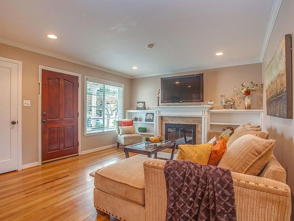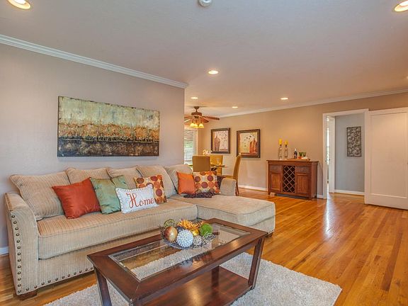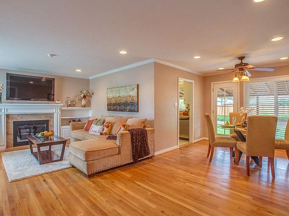 This Light and Bright Home includes Hardwood Floors, Double Pane Windows, Ceiling Fans, Crown molding and a Composition Shingle Roof. Other features include a Granite faced Fireplace in the Living Room surrounded by built-in Bookcases, Three Spacious Bedrooms and Automatic Sprinklers in Both Yards. The Large Backyard with Patio Cover and Ceiling Fans is Perfect for Entertaining and gives you the option to expand!