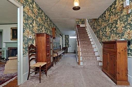 ONE OF A KIND!! If you like antiques, this one is a treasure. Formally an Old Stagecoach Inn. Now combining the Old with the New. Large grand entry and staircase, high ceilings, beams, wood floors, lots of original features, eight fireplaces, large country kitchen, five bedrooms four of which are very large, private location on exterior of town, beautiful grounds, additional field and private back yard. First floor laundry, newer two car garage, updated electric, new roof in 2014, and walk up attic for easy storage. Title V in progress. All appliances convey in AS IS condition. House is being sold AS IS.
