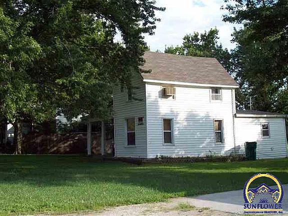 Enjoy small town living in this affordable 2 BR, 1 BA 1 1/2 story home 35 miles North of Topeka. Wrap-around front porch. Wood burning stove. Oversized detached double car garage and workshop. Shaded lot with mature trees. Refrigerator, stove and dishwasher stay with the home. Clean & ready to move in!