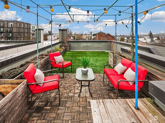 This exceptional "stand alone" townhome offers the perfect blend of privacy and convenience. NO shared interior walls-NO HOA dues! Enjoy breathtaking views of Lake Union, Mt. Rainier & City from the rooftop deck. Two bedrooms & full bath on entry level makes this ideal for generational living! Main floor features wide-plank oak hardwds, custom storage, stylish kitchen w/ample cabinetry, quartz counters, plus convenient deck off kitchen for bbq'ing. Upper floor features primary suite, a spa-inspired bath, plus a bedroom/office. A thoughtful floor plan which creates seamless living. One car grg w/room for bikes/gear. A 90+ Walk Score~minutes to Lake Union & Gas Works Park. Experience the best of PNW living in this unbeatable Fremont location!