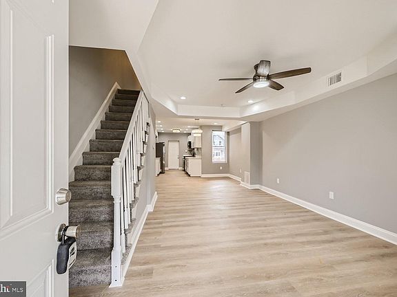 Newly renovated 3BR/1.5BA townhome located in the quiet neighborhood of Frankford. Step up to the covered front porch and open the door into your forever home. Step into the open concept main floor homeowners are seeking, offering tons of natural light and beautiful easy care flooring. The spacious living room features a tray ceiling and is open to the large dining room and kitchen. The amazing kitchen boasts new cabinets, stainless steel appliances, granite countertops with a complimenting backsplash, and a stainless sink. Onto the newly carpeted second floor with three sizable bedrooms and a full bath boasting a waterfall tile design and skylight. The lower level offers additional living space with a large family room featuring two brick accent walls, a half bath, storage, and laundry. From the kitchen step outside to a covered deck that overlooks the fenced yard with room to entertain and parking for one car. This home is move in ready and has so much to offer new homeowners. Imagine all this and in close proximity to shopping, restaurants, and commuter routes.