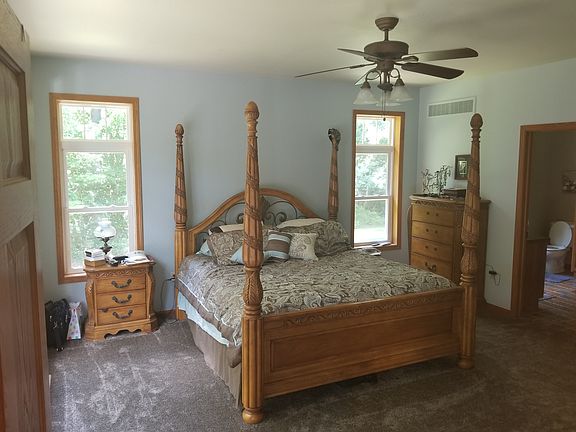 A private retreat, so close to town! 5 minutes from Crossroads Commons! Approx 2300 sq. ft. on the main level, approx. 1700 sq. ft. finished in the lower level. Walkout basement, heated floors in basement. Heating and Cooling with an open loop geo-thermal heat pump. Main floor features laundry, sunroom with 6 person hot tub, wood burning fireplace, and 2 bedrooms. Lower level features a kitchenette, wood burning fireplace, large full bathroom, large family room, and 2 more bedrooms. Also includes 30 x 40 detached garage, with large overhang.
