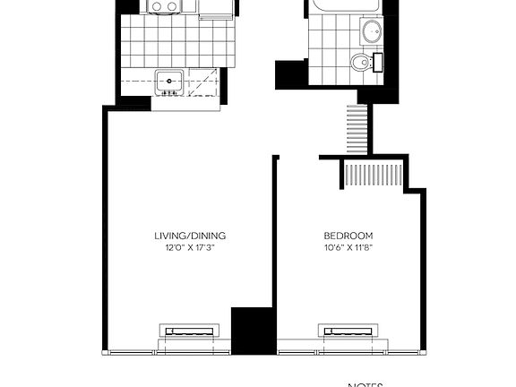Residence 2714 is a sunny 1 bedroom with a pass-through gourmet kitchen with Bosch stainless appliances and granite countertops.