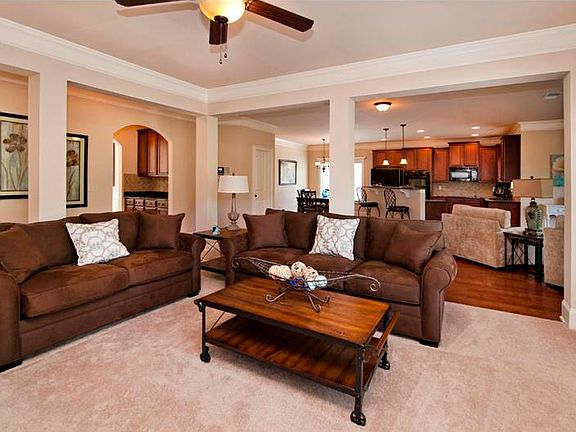 3 SIDED BRICK! The Martin is a 6 bedroom, 4.5 bathroom plan featuring a grand foyer that leads into formal living & dining areas. Open kitchen features eat-in area, Butler's pantry, large island with breakfast bar, cozy keeping room with corner fireplace. Guest suite on main floor. Oversized master retreat, sitting area & fireplace. The master bathroom has his & hers vanities, garden tub, separate tiled shower, & walk-in closets! In-ground sprinkler system, Gourmet kitchen with double built-in ovens & all stainless steel appliances included!