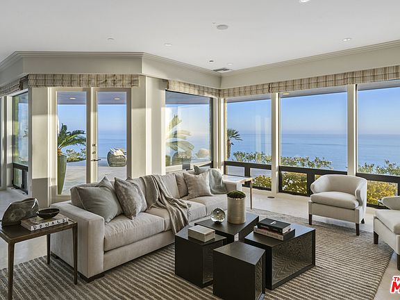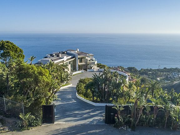 Situated on approximately 5 private acres on the West end of Malibu this contemporary home features incredible ocean and sunset views. Wonderful interior spaces in excess of 8,000+ sq ft. that includes private master suite, spacious family room, game room, and separate office suite. Open floor plan with floor to ceiling windows. Generous, open terraces throughout with exceptional views and privacy. Wonderful entertaining spaces. Home was substantially remodeled and updated in 2011. Additional features include pool, spa, and spacious motor court yard. Property also has two water storage tanks and back up house generator. Perfect oasis retreat.