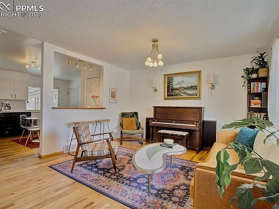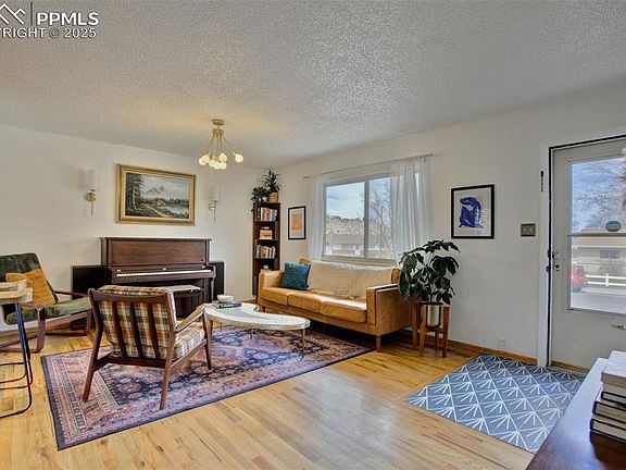 Tucked at the end of a quiet street in Holland Park, this remodeled 5-bed, 3-bath ranch-style home offers updated finishes, smart functionality, & a private backyard setting. Walk to Jackson Elementary school & park, just minutes from Garden of the Gods, UCCS, I-25, & the Mesa trail system. The main level features an open floorplan w/ hardwood floor throughout, a spacious great room with large window letting the natural light pour in. The combined kitchen/dining area is ideal for daily living. The kitchen has been fully remodeled, featuring updated counters, stainless appliances, updated cabinet hardware, new sink, faucet, & fixtures. Updated vinyl windows bring in natural light with easy access to the backyard. There are three bedrooms on the main level, including a primary suite w/ a private half bath. The modern hall full bath has been fully remodeled, finished w/ vertical subway tile surround, brass hardware, new vanity, & updated flooring for a clean, luxury feel. Head down to the finished basement that has been thoughtfully updated to accommodate two functional bedroom or office spaces, perfect for your needs. It also has newer carpet, a large rec room, laundry space with barn door & an updated ¾ bath. Major upgrades include central A/C, newer exterior & interior paint, newer electric panel, radon mitigation system, & a newer hot water heater, giving peace of mind to future owners. The backyard offers a private space to entertain, featuring a covered patio, stamped concrete, mature trees, & a storage shed. The automatic sprinkler system & 1-car attached garage w/extra parking pad for trailers or oversized vehicles add to the home’s everyday functionality. Located in D11 w/ no HOA & surrounded by long-established homes & quick access to parks, shops—this one is truly move-in ready inside & out.